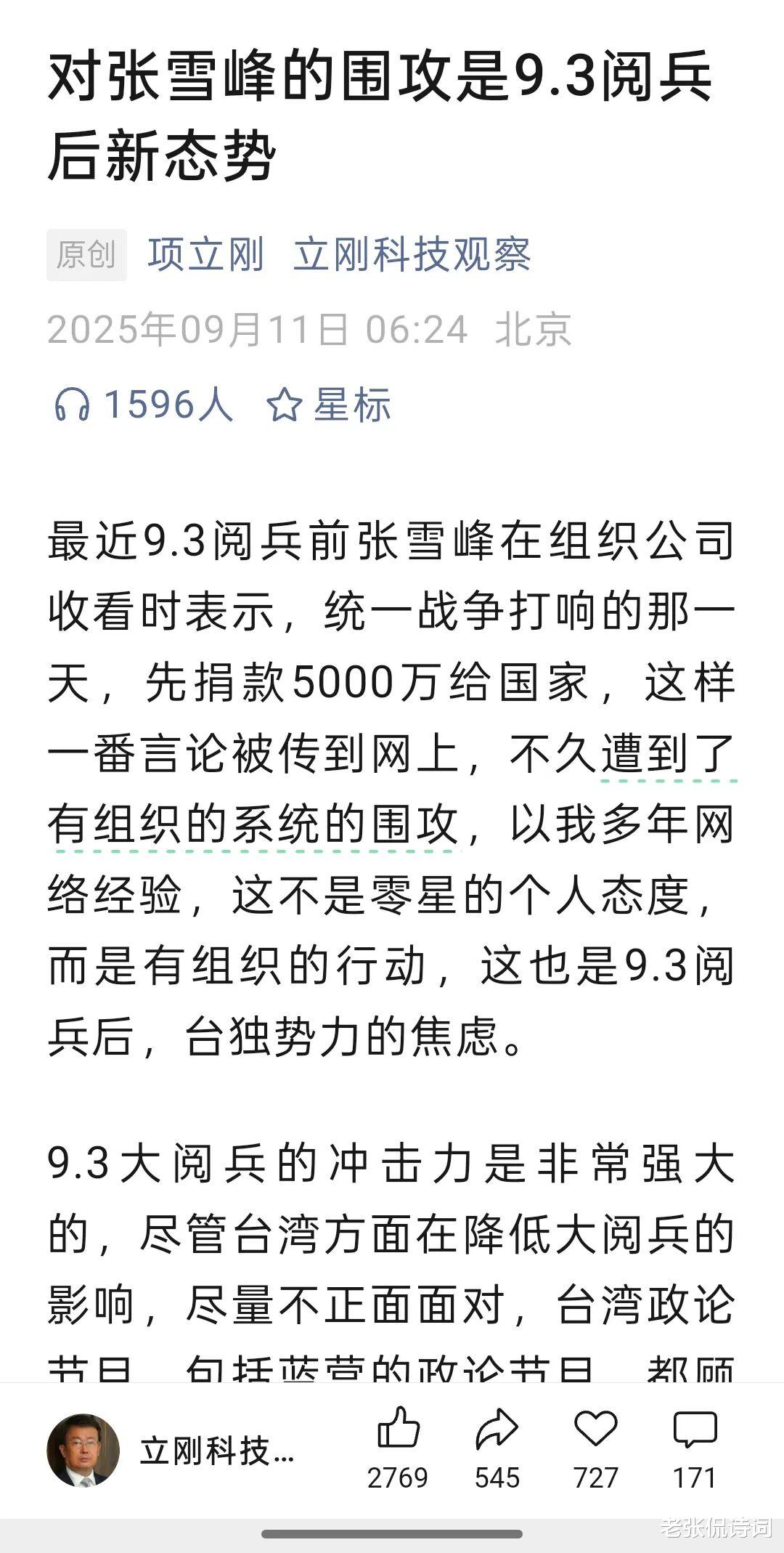 不得不说,项立刚的脑洞也足够大。张雪峰的一段话,对国家的一种忠心表达,竟然被挖掘到如此的深度,让人看后觉得惊出一身冷汗。