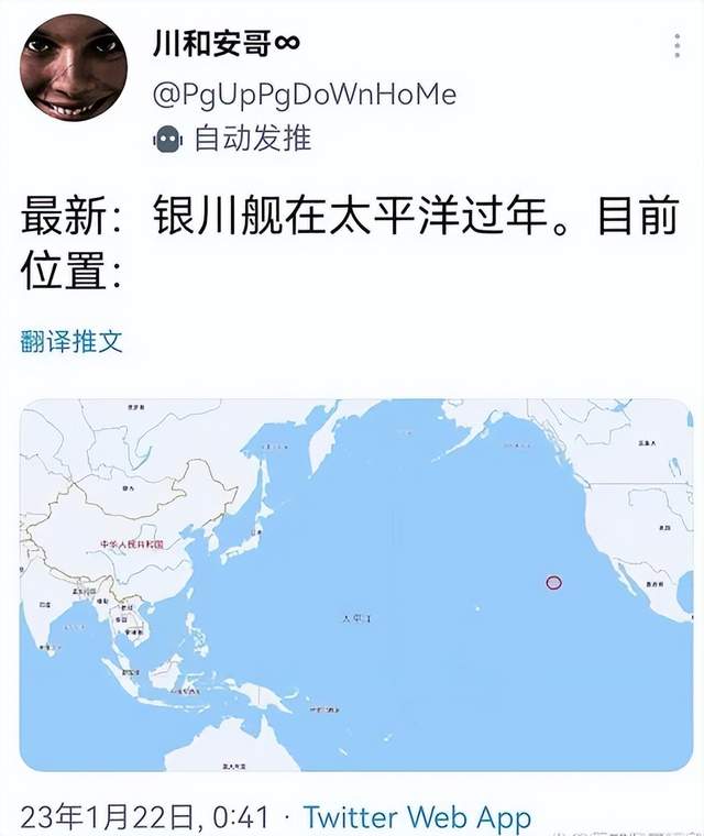 意味着国外社交自媒体上,署名“川和安哥”的账号,于1月22日,在推特上发布的关于175“银川”舰位置信息,似乎并不严谨。