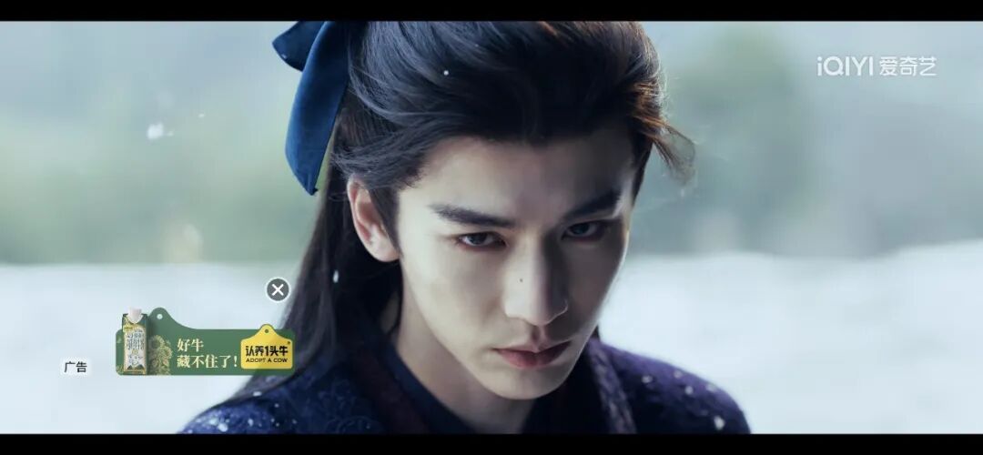 随橙想,这一句玩梗竟真喊来了合作——认养一头牛火速投放爱奇艺,梦幻联动男主“牛塑”标签,通过片头标板、创可贴、弹幕广告花式刷脸,用“神之广告位”玩梗出圈。比如在男主面具被击中、真面目即将揭晓的名场面,一句“好牛,藏不住了”精准卡点,直接戳中观众笑点。