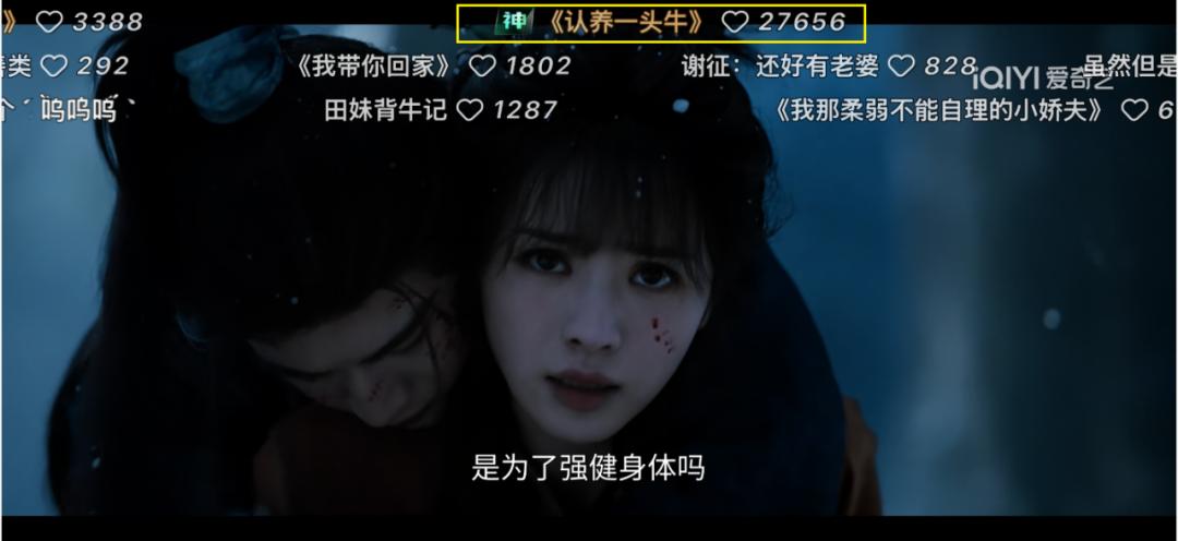 故事的开始,源于观众的一句玩梗弹幕。男主“谢征”的扮演者张凌赫此前被粉丝亲切称为“牛牛”。于是男女主雪地初遇的情节里,被爱玩梗的粉丝在弹幕疯狂cue品牌名,说女主“认养一头牛”,甚至还有用户直接去品牌官方社交媒体下请他们来投广告。