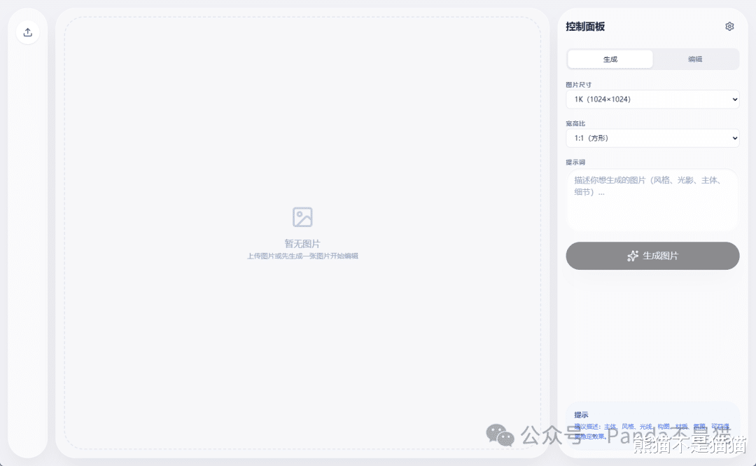 在首页,项目的左边有一处上传按钮,通过它可以上传图像,而右边则提供了图像的生成和编辑,因为要涉及到中文的输出,所以这里建议是使用nano-banana2。