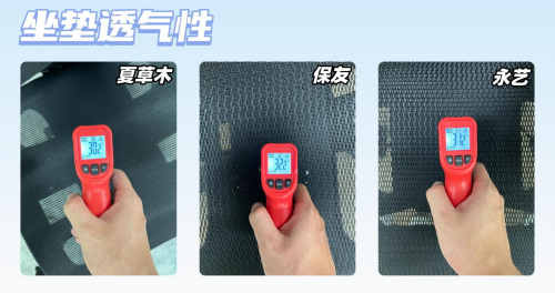 →测评方法:分别测试这三款椅子久坐后的温度,然后和室温进行对比。