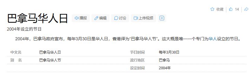 为肯定华人贡献,巴拿马2004年设立“华人日”,同年由华人社团筹资、中国政府资助的中巴公园和纪念碑落成。