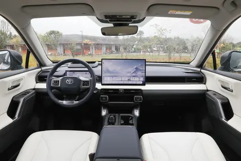 方向盘是全新的三幅式设计,握感扎实,后面还有换挡拨片(虽然混动车用得少)。抬头显示功能很实用,车速、导航信息直接投射在前风挡,不用低头看仪表了。无线充电板带散热风扇,手机放上去会显示充电状态,这些细节都能看出设计师真的研究了用户习惯。全车5个(含后排2个45W快充)Type-C接口。A柱视野优化,缩减20%截面宽度,降低转弯盲区风险。新车在保留丰田实用基因的基础上,通过中国团队自研的智能座舱实现“油电同智”,电子挡杆与隐藏式出风口等设计显著提升视觉简洁度,但部分实体按键质感仍有提升空间。