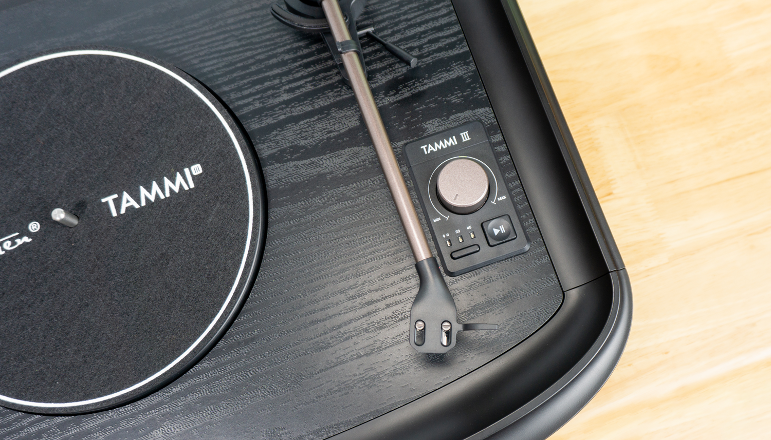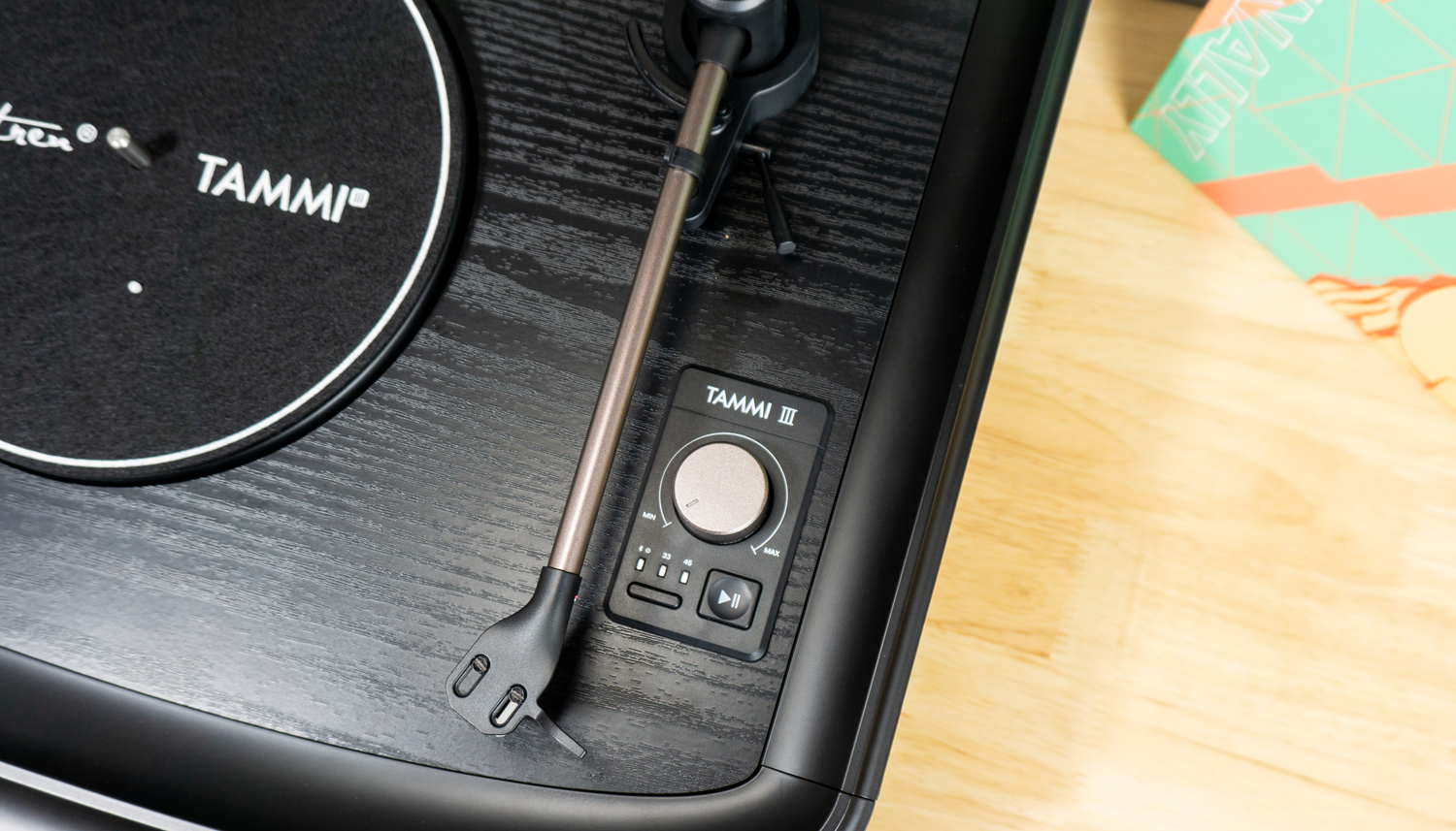 赛塔林Tammi的最大亮点在于其“插电即用”的极简理念。它省去了安装马达皮带、调平唱臂等繁琐步骤,连针压也已在出厂时调校。我们要做的只需将保护盖插入机身的合页上,一切就绪。这种“傻瓜”式的便捷操作,无疑是产品设计的一大进步。