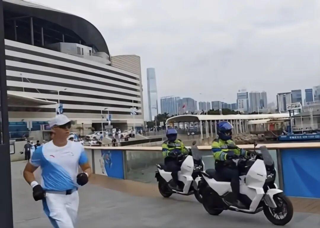 从网上流传的视频来看,骑警们驾驶着3台虔途01和2台宝马1250 RT组成前导车队,后面还跟了几台宝马和虔途01,共同护送火炬传递。打头阵的是一台白色虔途01,外观跟市面上卖的版本基本一致,在尖沙咀梳士巴利道上飞驰,造型感十足自然也吸引了不少观众的眼球。
