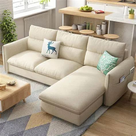 L型沙发通常比较占空间,对于小户型来说不太实用。建议选择小巧的沙发组合,或者直接选择单人沙发和茶几的搭配。