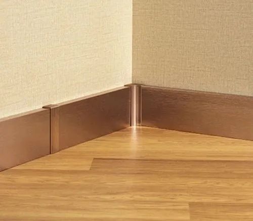 踢脚线不要使用黑色大理石或内嵌瓷砖做踢脚线,因为它们容易积灰且颜值较低。建议选择合金踢脚线,强度高且柔韧性好,不仅美观实用,而且易于清洁维护。