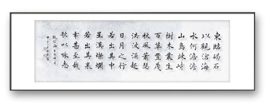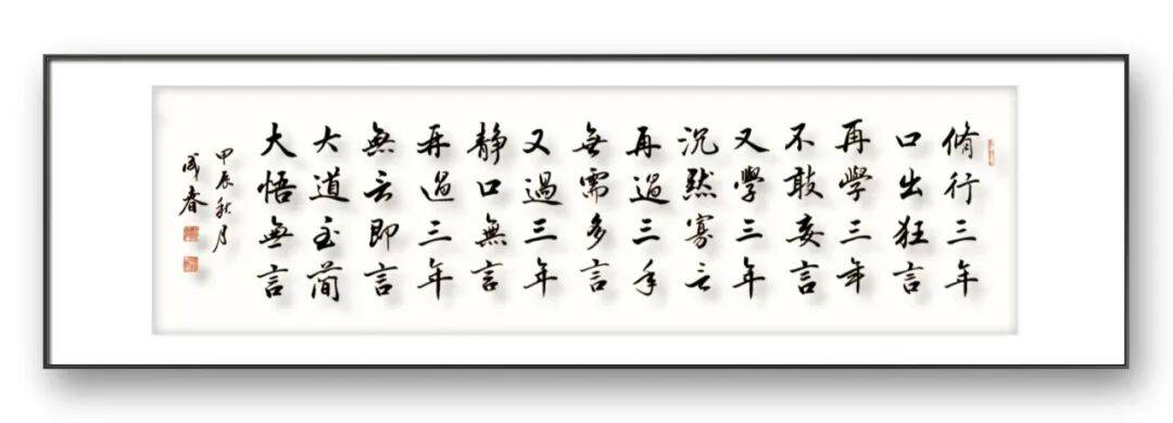 王成春先生在追随欧阳先生学习的过程中,他不仅习得其结体端庄、笔墨流畅的技法精髓,更领悟到"书法者,心学也"的艺术真谛——书法创作绝非单纯的笔墨游戏,而是书写者心境与修养的外在流露。赵玉亭、田英章等名师则在楷书技法与规范上为他夯实基础,让他的用笔更趋严谨,结体更显稳健。苗再新先生的艺术创作中所蕴含的人文情怀,又让他懂得如何在作品中融入情感与思想,赋予笔墨以生命力。