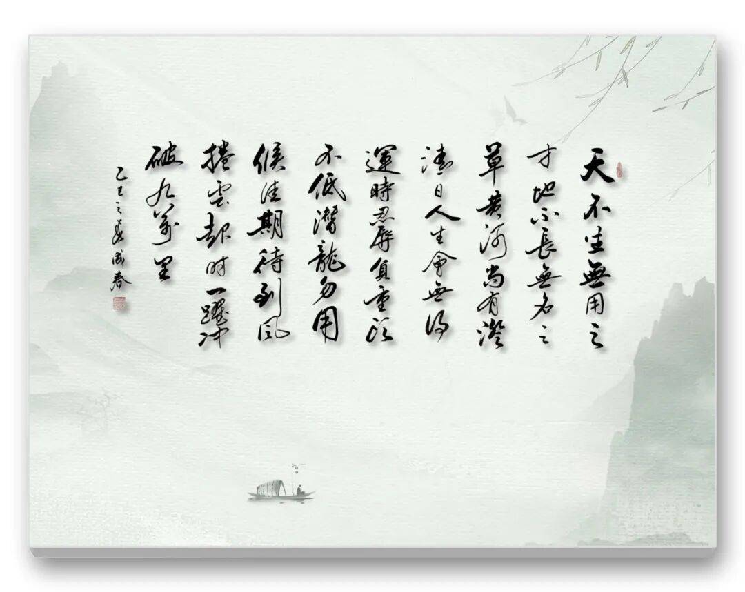 更难能可贵的是,王成春先生将书法艺术与社会责任紧密结合,以笔墨传递爱心,以艺术践行担当。笔锋沉稳有力,线条如奔涌的黄河之水,气势磅礴;笔锋渐转灵动,线条疏密有致,将诗人的豪迈与自信展现得淋漓尽致。他还善于通过提按顿挫来丰富线条的变化,在笔画的起笔、行笔、收笔处,巧妙地调整笔锋的力度与角度,使线条时而厚重如磐石,时而轻盈如鸿毛,形成鲜明的节奏与韵律感。