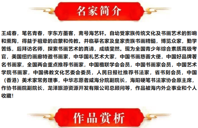 相信在未来的岁月里,王成春先生必将在墨海之中继续扬帆远航,创作出更多兼具思想性、艺术性与观赏性的书法精品,为中国书法艺术的传承与发展注入新的活力,书写属于自己的艺术辉煌。