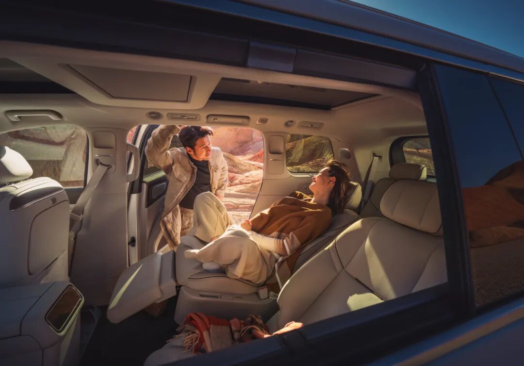 二排右侧 120° 零重力座椅也是亮点,四项腿托可调,官方说 1.9 米的人坐进去也能"悬浮"——这个形容有点夸张,但六座 SUV 的第二排做成真正的零重力座椅,在 30 万以内确实没有对手。