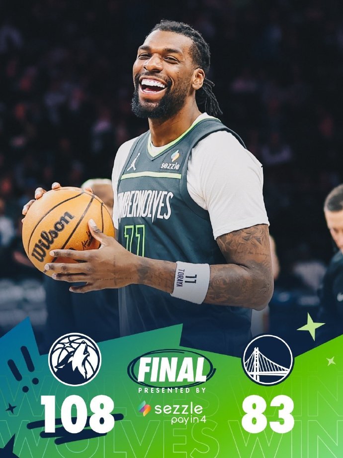 在昨天以85-111惨败给勇士之后,森林狼今天继续在主场和勇士交手,最终以108-83大胜勇士,净胜25分,终结了5连败,战绩来到28胜19负,反超太阳,摆脱附加赛区,重回西部前六。而勇士战绩来到26胜22负,继续排在西部第八。