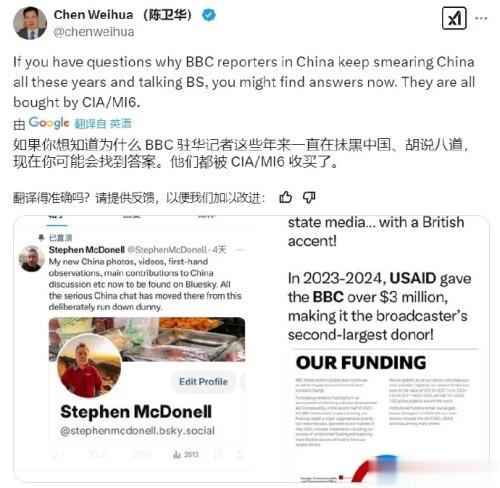 中国日报欧盟分社社长陈卫华一针见血指出:如果你想知道为什么 BBC 驻华记者这些年来一直在抹黑中国、胡说八道,现在你可能会找到答案。他们都被 CIA/MI6 收买了!