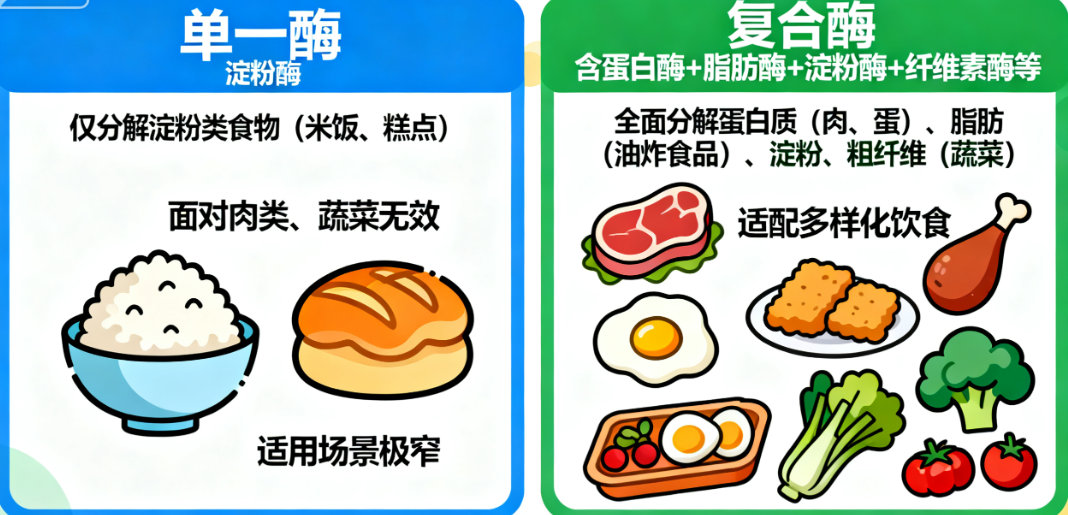 一张图看懂:复合酶 vs 单一酶的核心差异