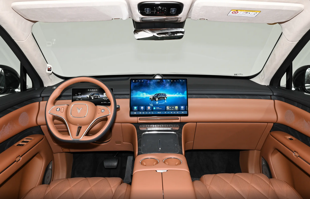 拉开车门,进入2026款岚图泰山的座舱,“T”字形中控台采用流畅的线条勾勒而成,结合宽大的车身设计,传递出大气、流畅的视觉效果。根据版本不同,2026款岚图泰山的座舱提供玄红、暖棕和云米三种配色风格,以便不同审美消费者选择。该款车配备的16.1英寸大屏承载了大量的功能,内置Harmony OS系统,车机操作逻辑清晰,流畅度也不错。即使如此,该款车还在空调出风口处保留了部分实体按键,驾驶员一伸手就能对其进行操控,便捷程度相对较好。平底式方向盘的配色与座舱整体风格相统一,全系均采用皮质材料包裹,支持四向调节,充分兼顾到不同身材消费者,加热功能则在寒冷冬季也能为驾驶员提供舒适的用车体验。值得一提的是,2026款岚图泰山还配备了55英寸HUD抬头显示系统,驾驶员目视前方就能看到所需信息,间接提升驾驶安全性。