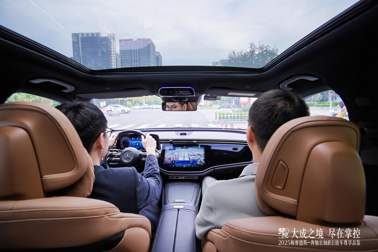 “科技互动区” 藏着 “大成” 智慧。“你好,奔驰” 唤醒 MBUX 系统,ARTICO 皮革座椅、可调后排椅背、64 色氛围灯与柏林之音带来舒适。专业讲师演示的悬挂与驾驶辅助系统,让过弯沉稳、直道平顺的 “从容” 可感。