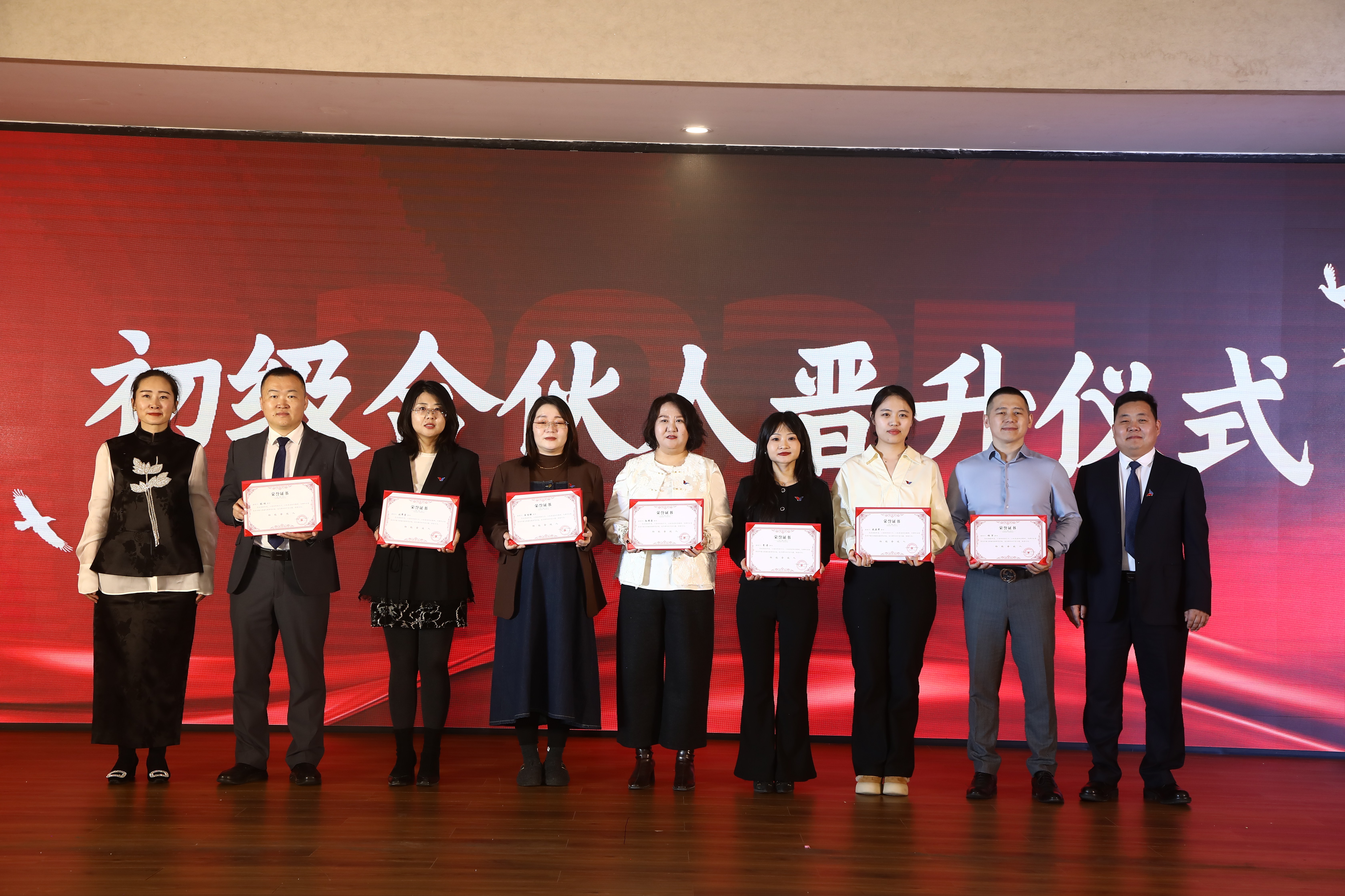 九位优秀同仁王佳丽、刘翠荣、李丹、迟薇、张林、孙慧晶、武亚男、杨万、白斯古愣正式晋升为初级合伙人。他们接过沉甸甸的证书,也接过了更多的责任与期待。未来,他们的名字将与励炜的发展更加紧密地相连。