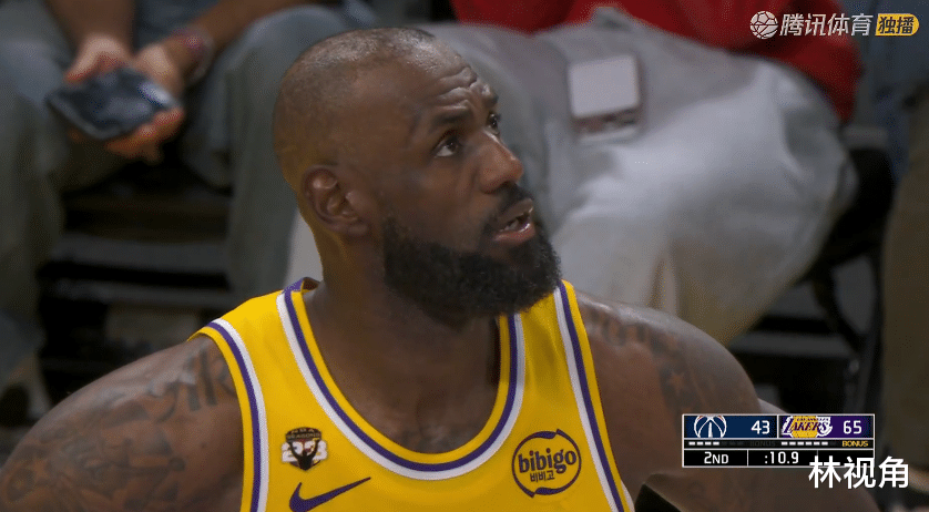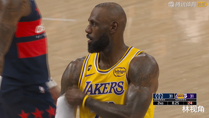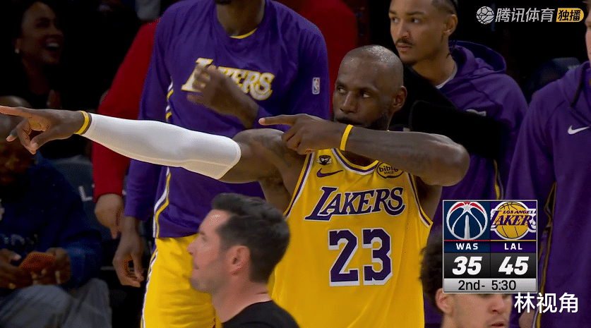 老詹回到场上带队,裁判吹了奇才进攻犯规,转回头肯纳德底角三分命中,帮助湖人稳住局势。