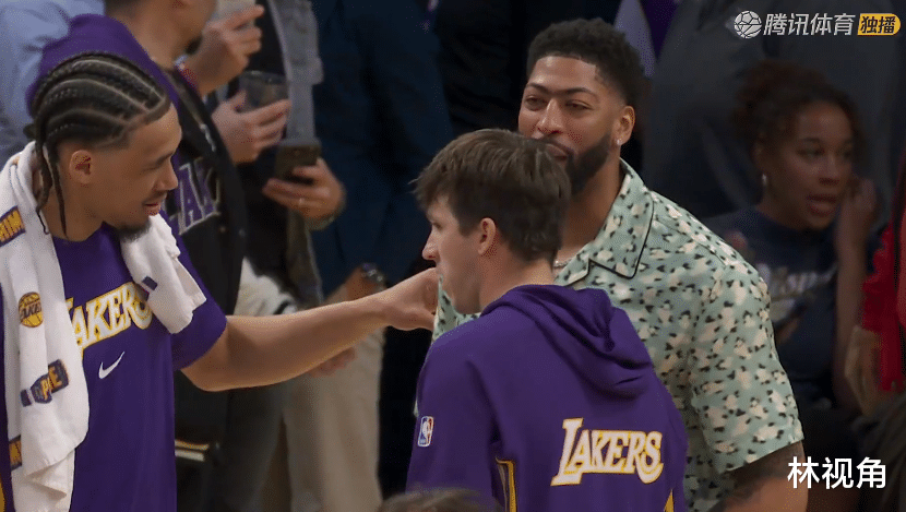 比赛结束,老詹先一步退场了,小里走向奇才替补席方向,去找浓眉拥抱致意、热聊,克内克特、海斯等人也都过来,逐一和浓眉击掌,看得出来这些人和浓眉私交都很好。