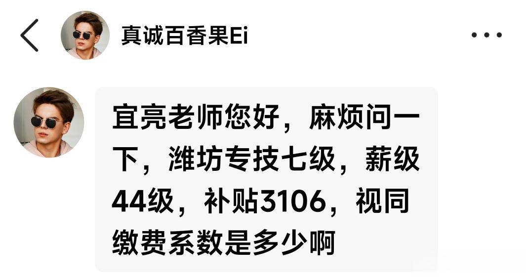 “麻烦问一下,潍坊专技七级,薪级44级,补贴3106,视同缴费系数是多少啊”