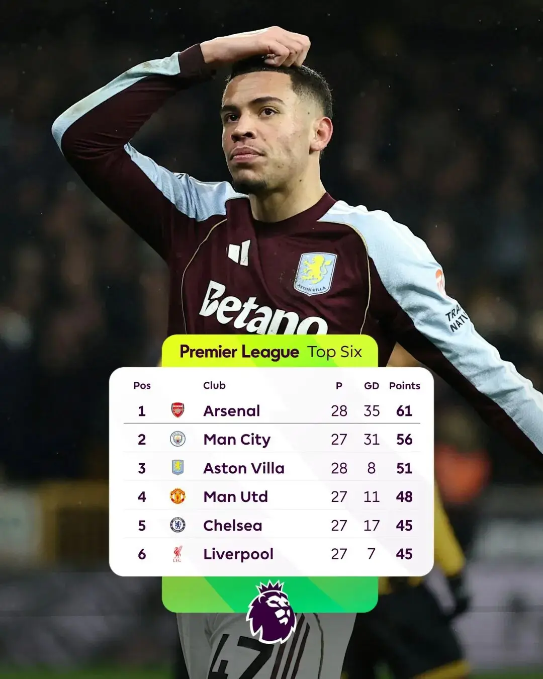 反观阿斯顿维拉,尽管在英超赛场上意外失利,但他们并非没有退路。埃梅里的球队可以通过欧联杯争取欧冠资格,在周五的欧联杯1/8决赛抽签中,维拉确定对阵法甲里尔,作为欧联杯夺冠赔率最高的球队,他们的主要竞争对手包括意甲罗马、德甲斯图加特和弗赖堡等劲旅,想要顺利晋级,仍需全力以赴。值得一提的是,维拉向来有“功亏一篑”的特点,上赛季英超最后一轮,正是曼联在梦剧场2-0击败他们,断送了其欧冠希望,这也从侧面说明,维拉在关键场次中难以保持稳定。
