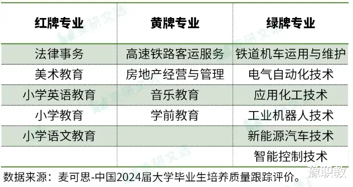 “红牌”主要是失业量较大,就业率持续走低,且薪资较低的专业,属于高失业风险型专业。
