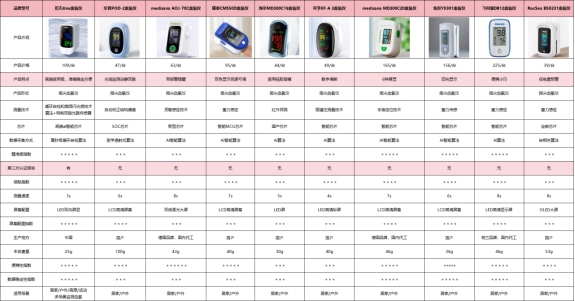 看完上面的选购技巧,你知道怎么选血氧仪了吗?为方便大家直观对比几款实测产品的核心表现,我整理了表格放在后面。希望这些真实数据能帮你少踩坑,选到合适的~