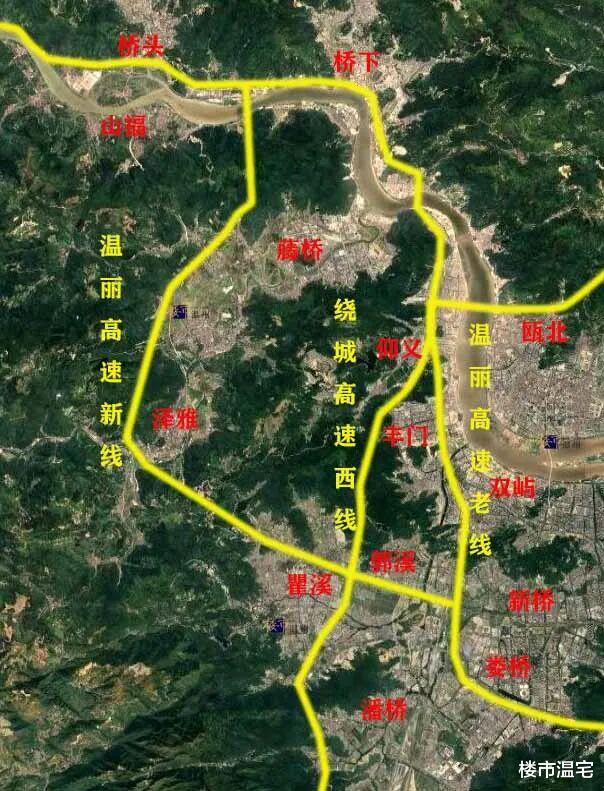 也就是说,今后温丽高速桥下至郭溪段,将有温丽高速老线、绕出高速西线、温丽高速新线3条基本平行的高速公路。