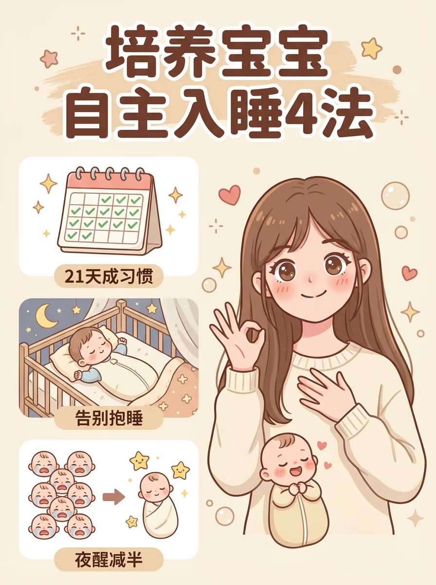 · 第15-21天:大部分宝宝能自主入睡,成功率80%以上。