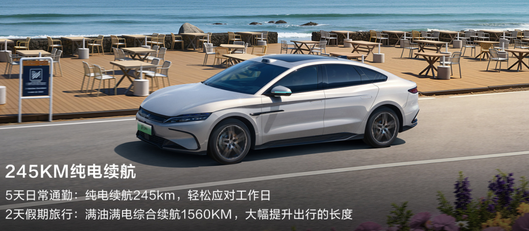 续航与能耗是此次升级的核心亮点。老款汉DM-i 125km的纯电续航放在当下市场已显乏力,新款长续航版直接提升至245km,满足大多数用户5天日常通勤纯电出行的需求,NEDC亏电油耗低至3.44L,综合续航达1560km,缓解了长途出行的补能焦虑;纯电版车型续航也提升至635/705km,零百加速优化至6.9s,百公里能耗10.6kWh,兼顾性能与经济性。