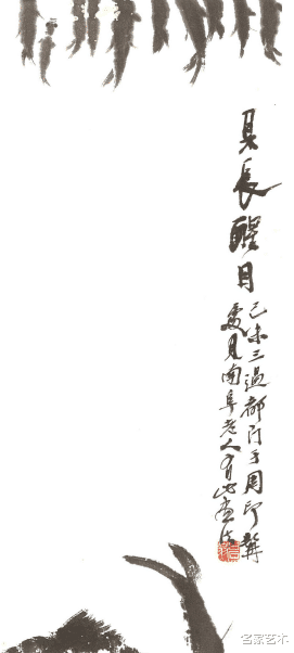 纸本墨笔43cm×20cm1919年(乙未)【题款】身长醒目。己未三过都门,于周印髯处见南阜老人有此画法。【钤印】白石翁(白文)