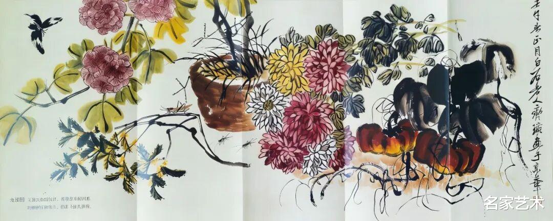水族群图【1】身长醒目独具匠心上下游空灵无物压枝头扬州八怪添新意三过都门风雨舟白石老人这幅作品构图十分奇特,画面中心空无一物,却在画幅上下两端描绘了两组游鱼,且鱼群中的形象多为鱼尾、背鳍,仅有一条完整的小鱼。采用了一种打破描写物象完整性的方式来强调画面的独立性,将观者的目光集中到绘画本身上来,可谓独具匠心。此外,画中题款记载了白石老人三过都门的逸事。白石老人晚年因疾右臂病废,书画篆刻改用左手,别有一番妙趣。白石老人的写意花鸟画受扬州八怪中的金农、李鱓、黄慎、郑板桥等人影响极大,此画师南阜老人高凤翰,殊为珍贵。