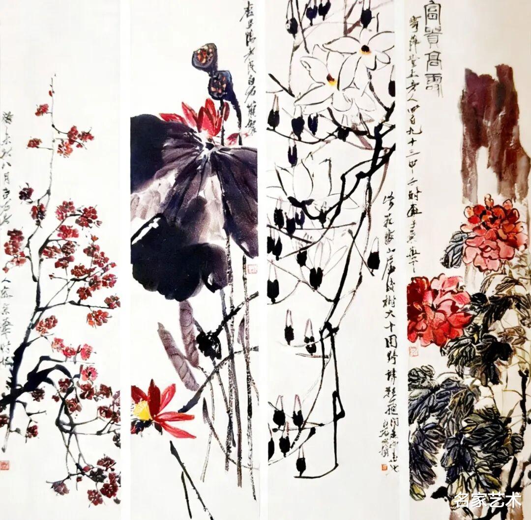 山水楼阁【1】洞庭看日远望洞庭十里香拂晓日出展群芳满园春色望不尽扬帆荡漾好风光白石老人笔下的牡丹花卉,虽然是大写意,但给我们的感觉却是真切、自然、生动。此画中恣意舒展的牡丹,分明是花在风中摇曳、起舞。这时,他的画笔仿佛采到了自然生命的灵气,将花之美活脱脱地融化在了笔墨之间,遂成笔迹与花魂的交响。那里激荡着画家的诗情墨韵。白石老人所营造的这个奇逸的花卉世界里,在笔墨纵横淋漓、烂漫天真的掩映之下,疏放蕴中含着静穆,洒脱中体现着浑厚。在表现上,白石老人打破了传统绘画中以墨为主的固有范式,尝试使用纯色借以突出花卉亮丽的审美特征,墨线辅之,焦墨题款衬之,是典型的写意重彩作品。在这幅作品中,花朵采用了没骨画法,但摒弃了传统没骨画法的淡雅清秀风气,花冠数笔浓彩犹如高山坠石,落笔果断肯定,铿锵有力;花身施以淡彩,灵透不乏力量感。