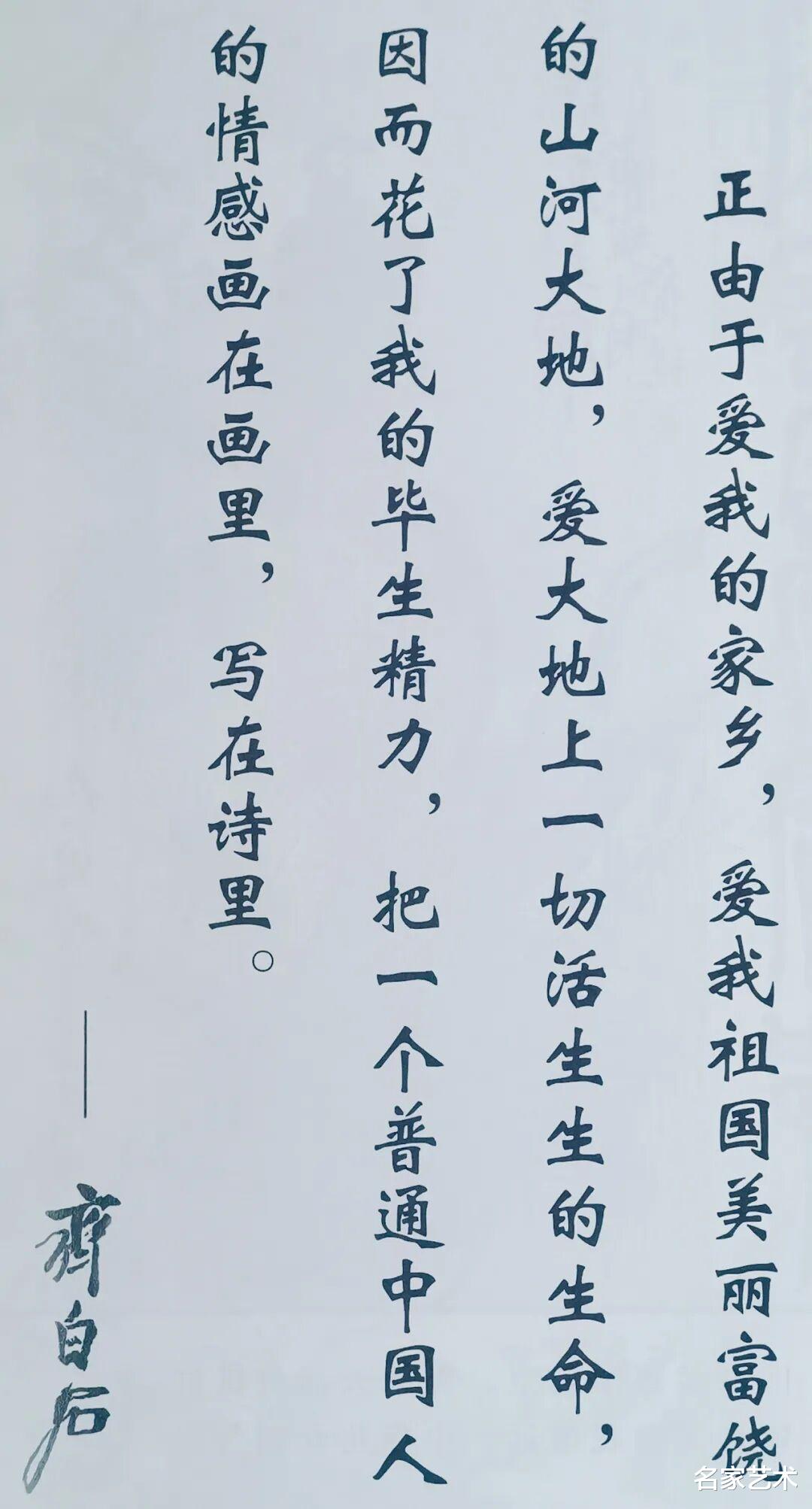 齐白石先生曾任中央文史馆馆员、中国美术家协会主席,中央美术学院教授。被国家授予人民艺术家等称号,也是我国唯一一位被评为“世界十大文化名人”的华人艺术家。1956年白石老人获得“世界和平奖”,尤其是他曾在颁奖典礼上激动地讲到:“正由于爱我的家乡,爱我祖国美丽富饶的山河大地,爱大地上一切活生生的生命,因而花了我的毕生精力,把一个普通中国人的感情画在画里,写在诗里。”