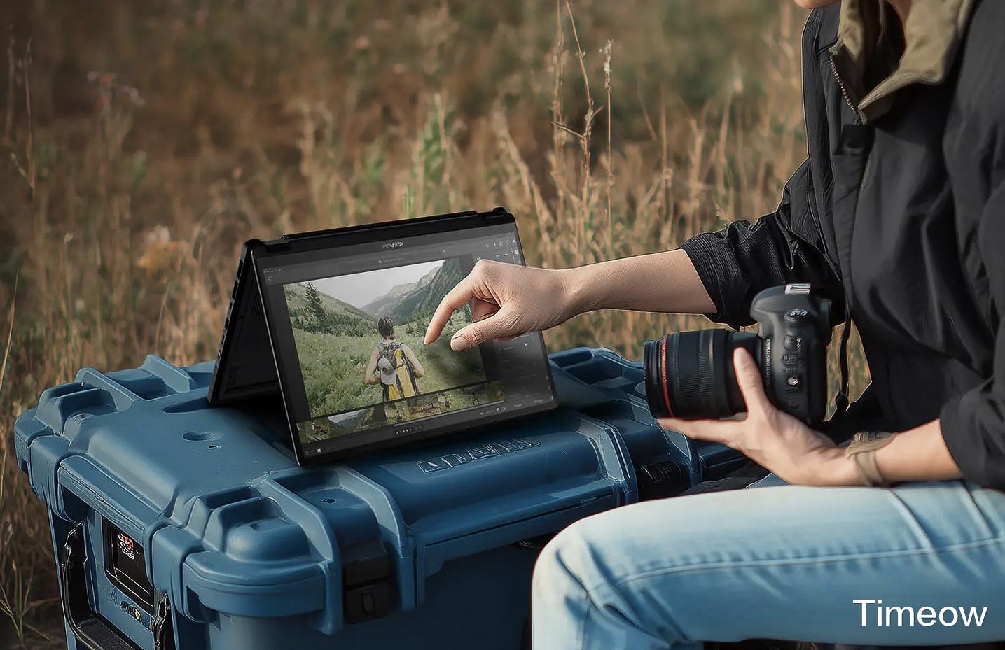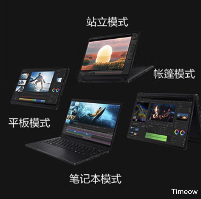 最绝的是如此轻薄的它依旧延续了前代经典的360°自由翻转设计,笔记本、平板、站立、帐篷四种模式无缝切换,完全覆盖了旅行和户外创作全流程的需求。