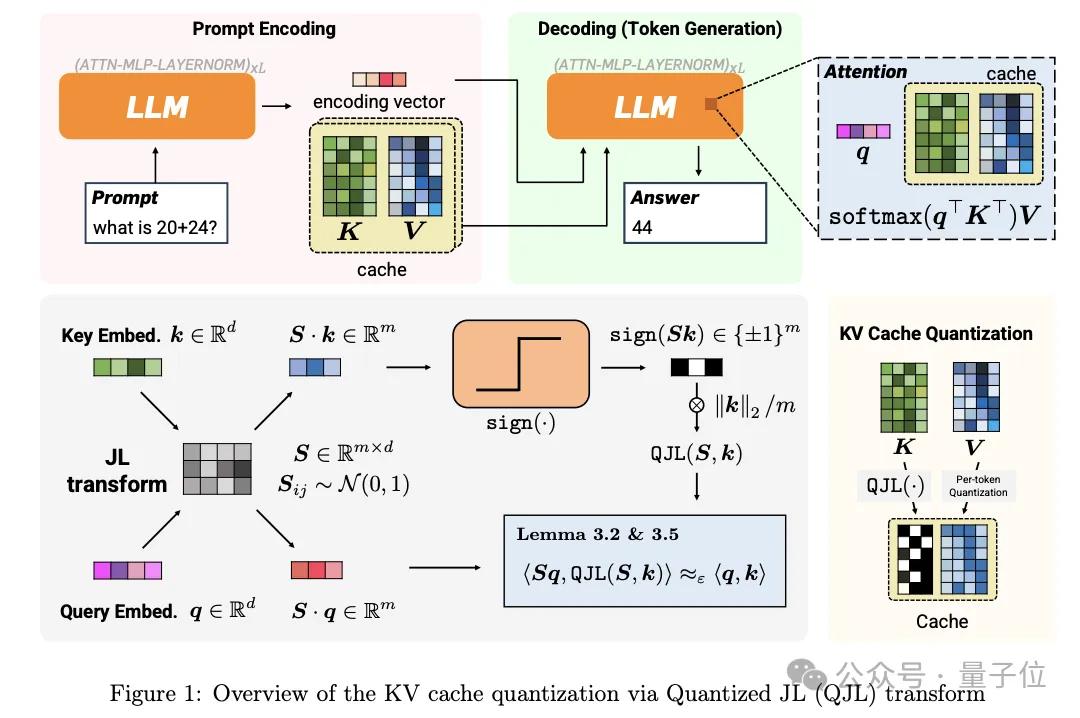 把高维数据投影后压缩成+1或-1的符号位,完全不需要额外内存。TurboQuant用它来消除PolarQuant压缩后残留的微小误差。