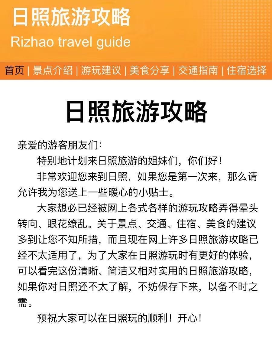 刚和朋友从日照🏜️回来!提前做好的攻略就是香👻,全程跟着攻略🗺️完的,轻松愉快👻。回来后就整理了这份旅行攻略✍️,分享💁🏻给计划去日照的小伙伴,快收藏起来🌟吧~🌟!
