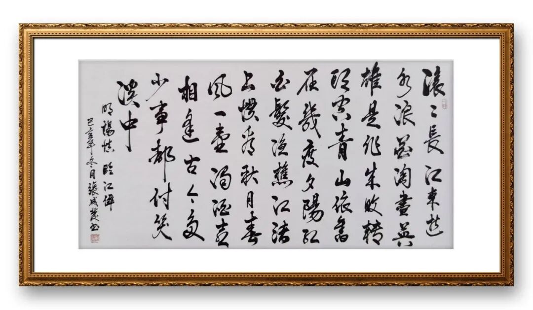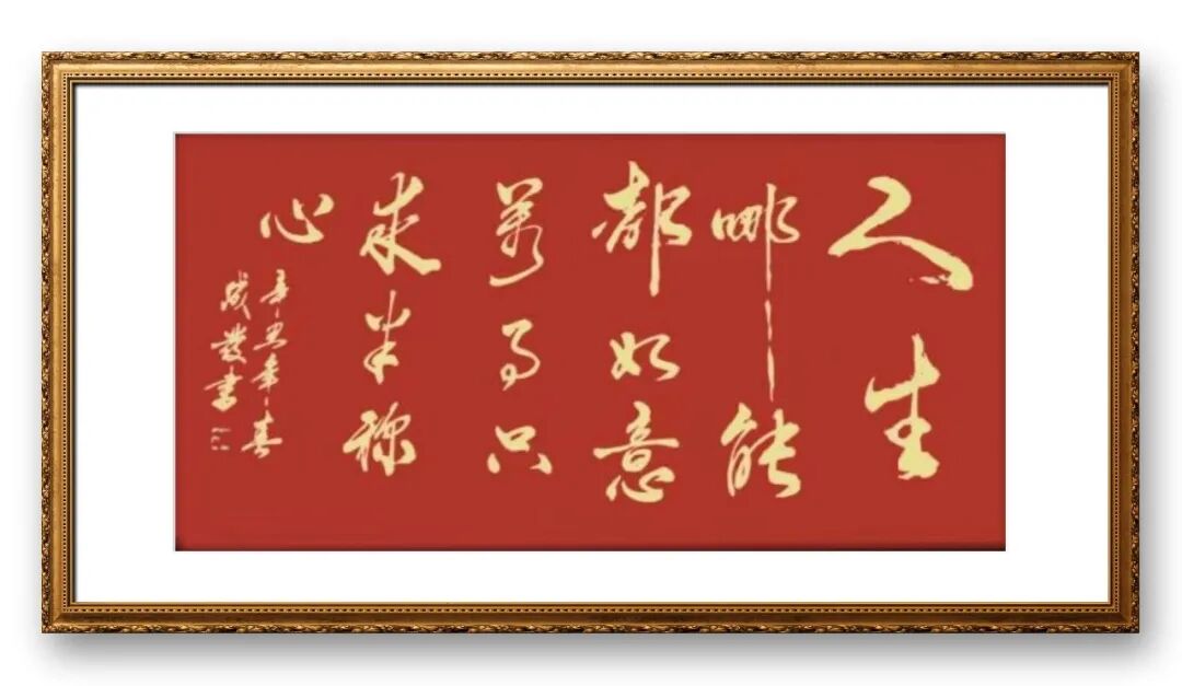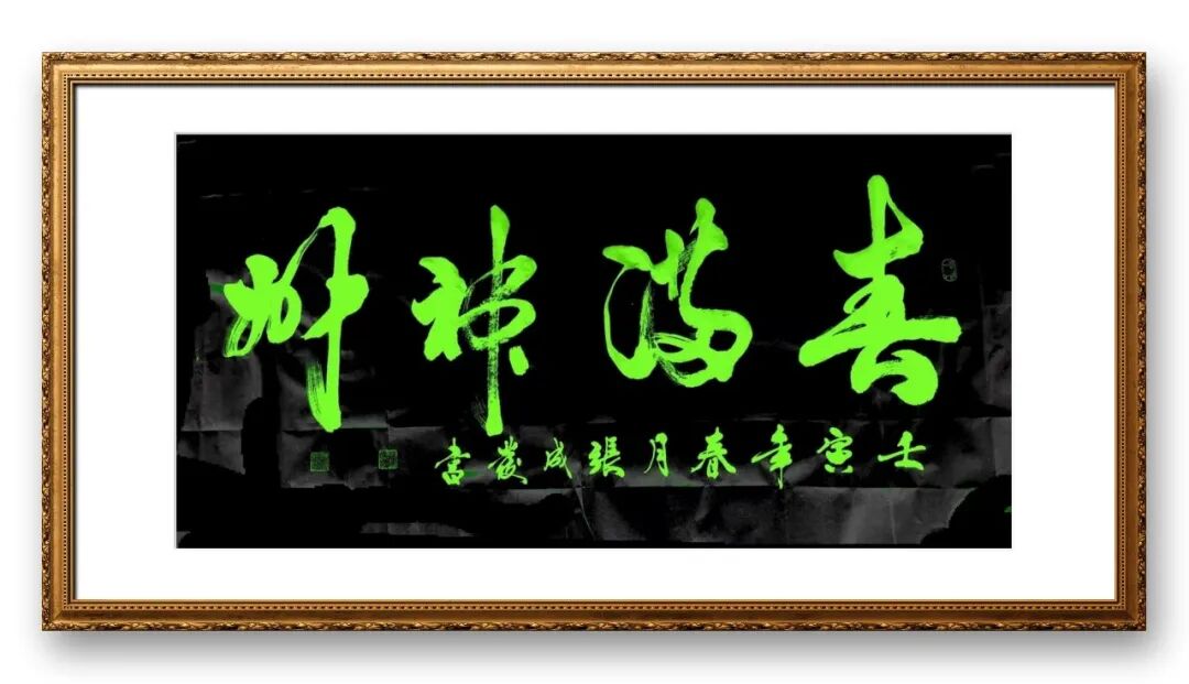 在章法布局上,张成发先生更是独具匠心,注重整体的和谐与统一。他的作品,无论是横幅、竖幅,还是斗方、扇面,都能做到布局合理、疏密有致,字与字、行与行之间呼应协调,留白恰到好处,给人以视觉上的美感。他善于根据书写内容的不同,调整章法布局,让内容与形式完美融合。书写端庄典雅的古典诗词时,他的布局严谨规整,字体端庄秀丽,彰显出诗词的意境之美;书写豪迈奔放的励志语句时,他的布局舒展大气,字体雄浑洒脱,传递出积极向上的精神力量。同时,先生注重落款与印章的搭配,落款字体与正文协调统一,印章钤印位置恰到好处,既起到了点缀作用,又增强了作品的整体美感,让整幅作品浑然一体、相得益彰。