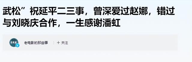 澎湃新闻·澎湃号·湃客——武松”祝延平二三事,曾深爱过赵娜,错过与刘晓庆合作,一生感谢潘虹