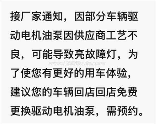 后面发现自己的车也在此次召回批次内,其他问题都好处理,但更换驱动电机油泵需要动车体、放机油等复杂操作,对于一辆准新车而言,这样反复拆件会严重影响车辆的保值率,同时也带来了时间上的损失。