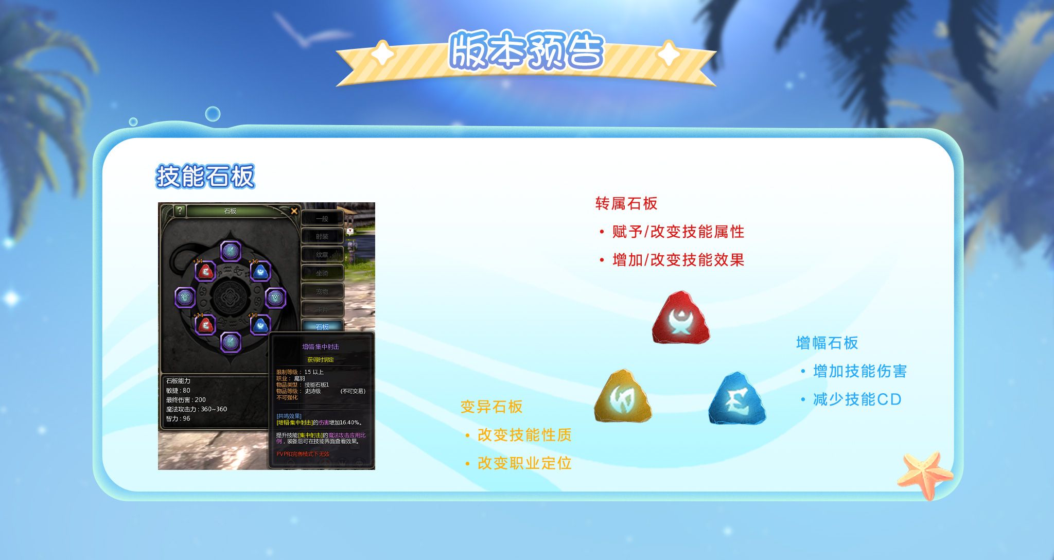 技能还能这样玩?全新“技能石板”玩法即将上线——无需强化、不逼氪金、禁止交易,只考验你的策略搭配!通过装备不同石板,玩家可以直接改变技能的属性,甚至改变技能的定位。更值得一提的是,多种石板组合还可激活隐藏效果,极大丰富了职业流派的选择空间,喜欢Build研究的玩家这次真的赚到了!