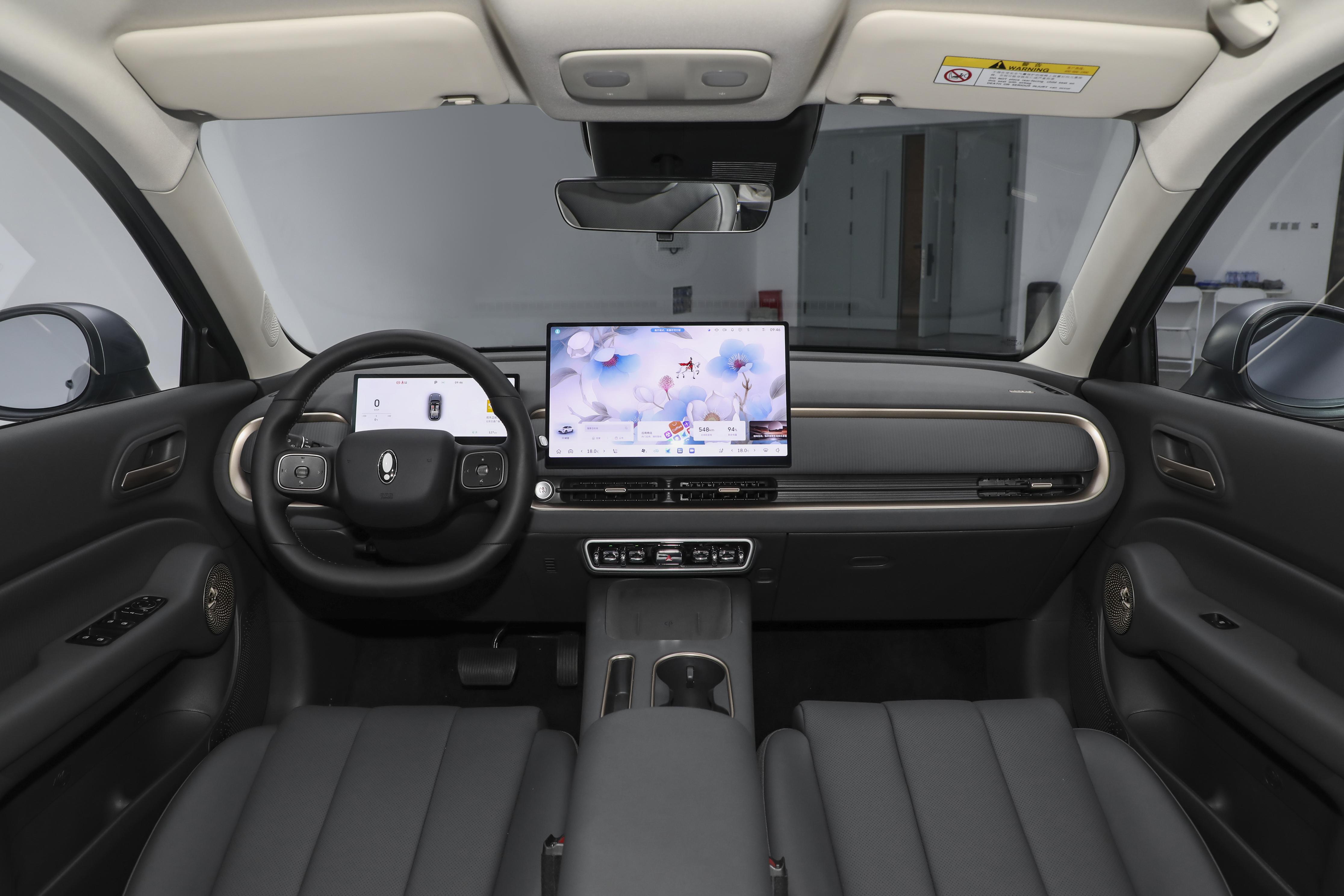 内饰部分,欧拉5采用简约风格设计,配备纯色双辐式方向盘、全液晶仪表及15.6英寸悬浮式中控屏,内置Coffee OS 3车机系统。