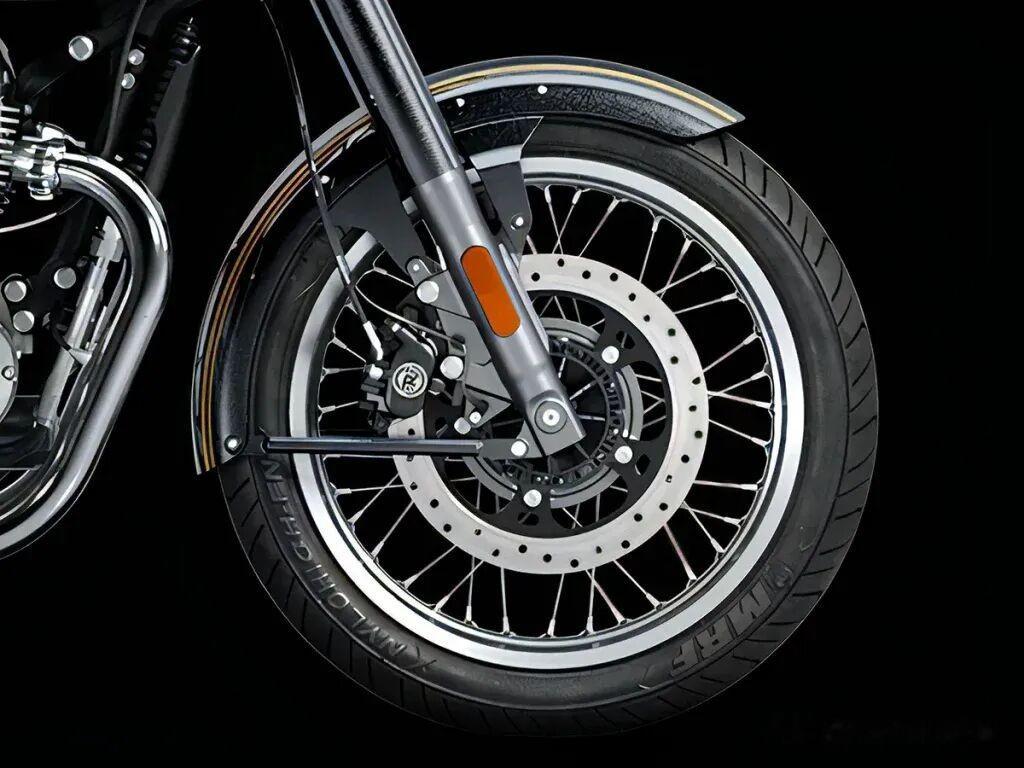 在悬吊与制动配置方面,Bullet 650采用前41mm(部分市场为43mm)正立式前叉与后双枪避震,并由Showa提供系统支持。制动部分则采前320mm碟盘搭配双活塞卡钳、后单碟配置,轮圈尺寸为前19寸、后18寸。整体设定着重舒适与稳定,呈现悠闲复古巡航的特质,同时保留易上手的日常友善特性与浓厚老车气质。