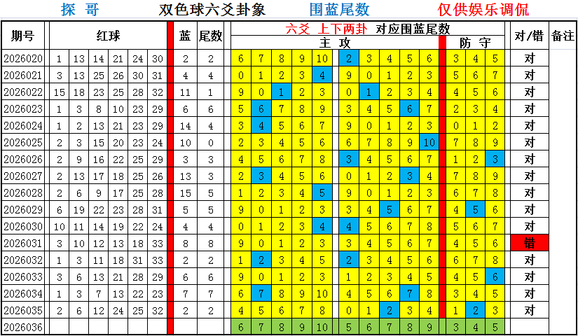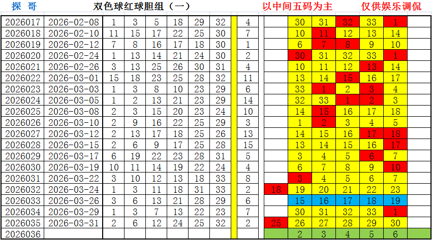自双色球第032期开始,所有胆组更换新数据,希各知照。