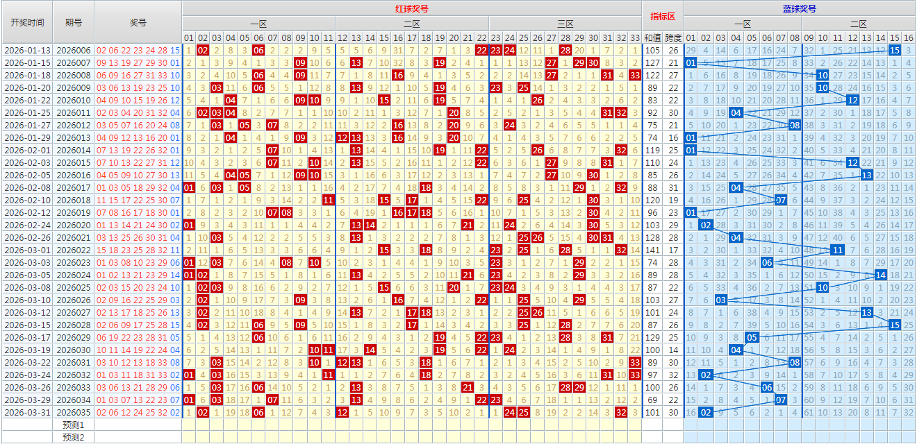 大小:红球02、06、12、24、25、32,蓝球02
