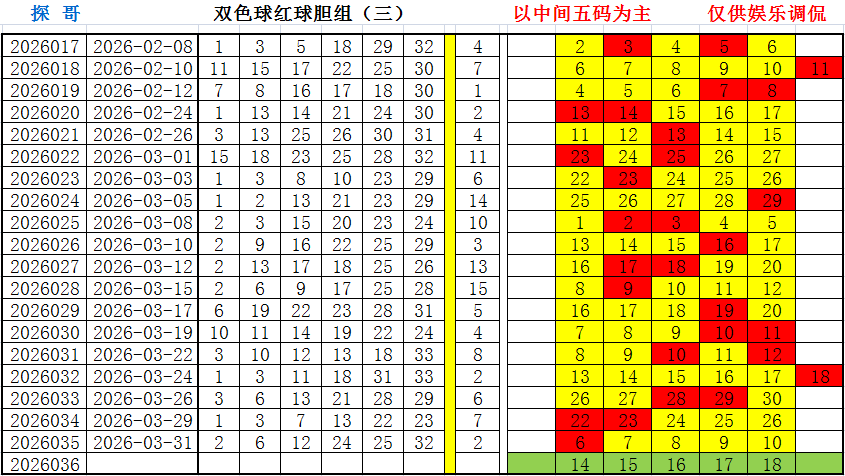 红球胆组三(新数据):14、15、16、17、18,开?;