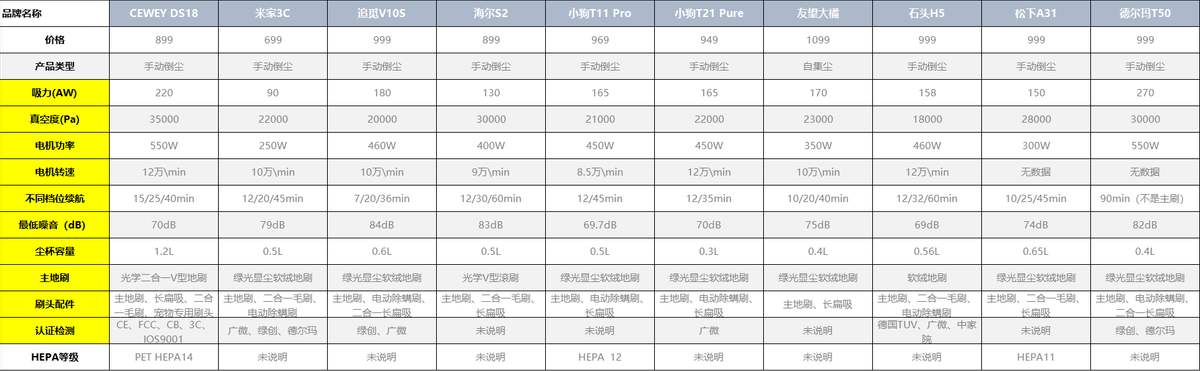 我自己在家电圈已经混了六年多,用过的吸尘器没有百来台也有几十台。我这次更新的榜单,都是我亲自用过的。几台机器表现挺稳,吸力够、刷头好清理,用起来也顺手。另外还告诉你该如何去看吸尘器到底真好用还是假的,如果不想看这些知识科普,想抄作业的话可以直接看下面这张图: