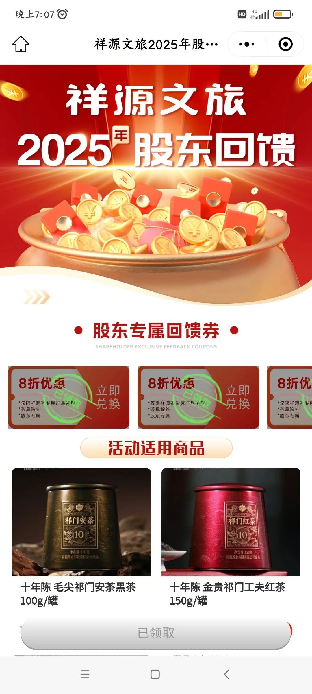 结果这次股东回馈,变成了成茶叶优H券。