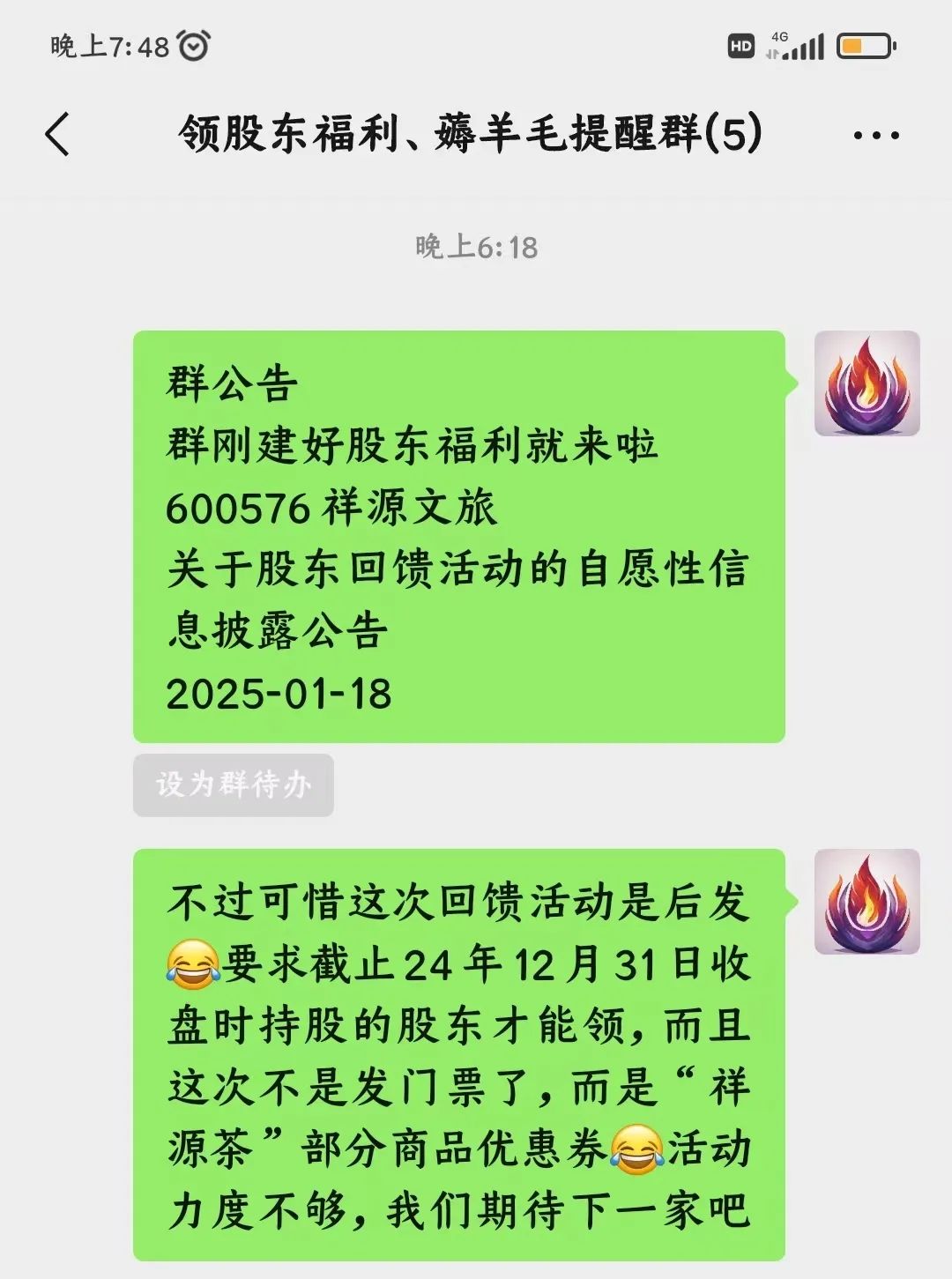 公告是今天(2025年1月18日)发的,但股权登记日是2024年12月31日收盘。所以这次又是“后发”(也就是要求股东先持股,后发公告通知股东有回馈活动)